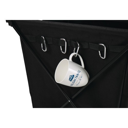 Met het HUGO sideboard, 2 in 1, kun je genieten van een drankje, je persoonlijke spullen op het dienblad leggen en ook flessen, glazen, zaklampen, enz. opbergen dankzij het geïntegreerde, uitneembare opbergvak. Een praktische oplossing voor camperaars en "vanlifers" deze zomer! Het sideboard is opvouwbaar en heeft opbergruimte en haken/ karabijnhaken (4 aan elke kant), waardoor het ideaal is voor gebruik in campers, caravans en onder luifels of voortenten. Compact en lichtgewicht, je kunt het overal mee naartoe nemen.
