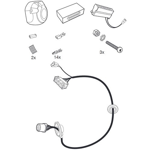 A Mecatechnic escolheu para si um arnês de engate específico com uma tomada de 13 pinos. Isto permite-lhe ligar o seu reboque, porta-bicicletas e/ou caravana ao seu veículo, de acordo com as recomendações do seu fabricante.