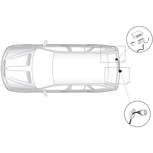 TTCA Mecatechnic escolheu para si um arnês de engate específico com uma tomada de 13 pinos. Isto permite-lhe ligar o seu reboque, porta-bicicletas e/ou caravana ao seu veículo, de acordo com as recomendações do seu fabricante.