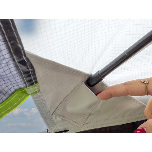 Uma calha de 6 ou 9 mm de diâmetro interior é indispensável para manter o toldo em contacto com a carrinha. Está disponível, em opção, um painel lateral para maior conforto.