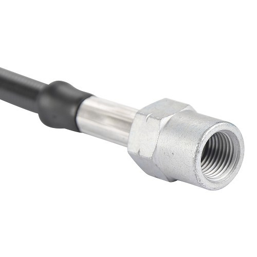 Estas mangueiras metálicas trançadasGOODRIDGE oferecem alta resistência à pressão do fluido de travagem a altas temperaturas. Esta técnica de aviação da competição evita o efeito "pedal suave" das mangueiras originais.